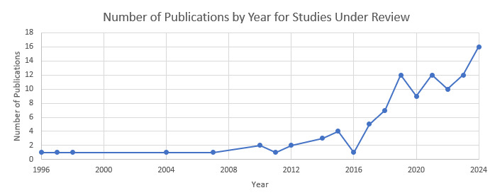In this section, the findings emerging from an analysis of the 101 articles identified in the systematic review described in Section 2 are presented and discussed. By exploring the prior research in this systematic manner, themes and patterns within the data are identified, which assist in developing an understanding of the research conducted on the economic pillar of sustainability of farm enterprises up to 31 December 2024 and identifying notable gaps to provide avenues for future research. First, a bibliometric analysis of the articles is profiled in Section 3.1. Next, in Section 3.2, a focus on the study context of the articles is presented by exploring the type of farm system in operation and its geographical location. These factors are important to gain a deeper insight into farm-level economic sustainability. The type of farm system directly influences economic outcomes such as farm profitability. Likewise, geographical location plays a role in understanding the regional differences that might impact a farm’s economic viability, such as the market conditions and agricultural policies in existence. Section 3.3 summarises the research methods adopted within these articles and in Section 3.4 the focus of enquiry within these publications is summarised using thematic analysis.