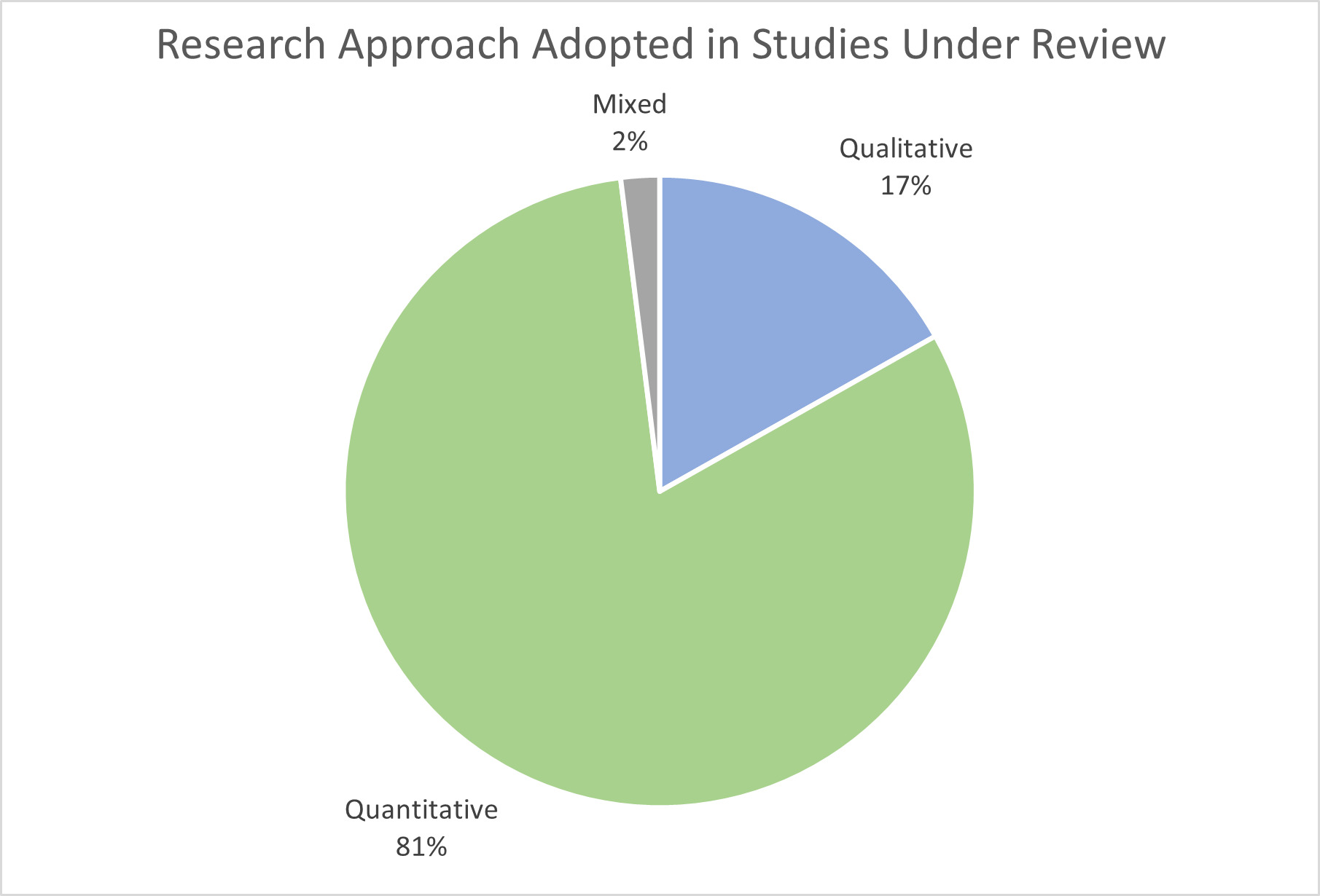 In this section the research methods adopted are summarised by categorising the studies as either qualitative or quantitative. The findings are depicted in Figure 7.